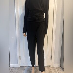 Sophisticated black jumpsuit with sleek long sleeves. Perfect for a refined look.