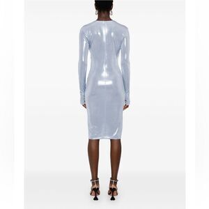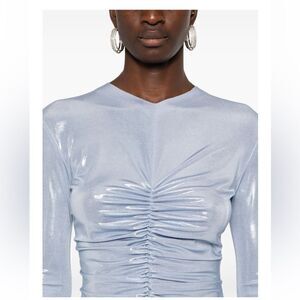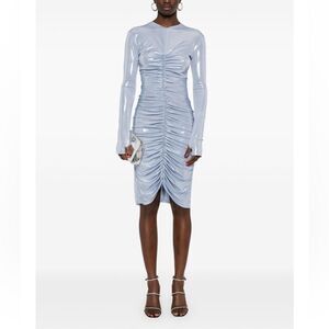 Norma Kamali V neck mini dress silver blue ruched bodycon FWRD Revolve S