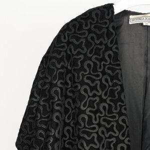 Norma Kamali Vintage 80's Black Velvet Squiggle Hooded Jacket