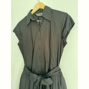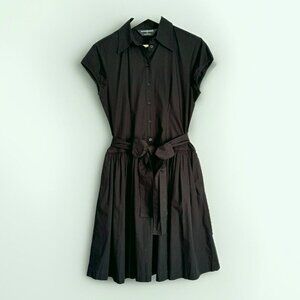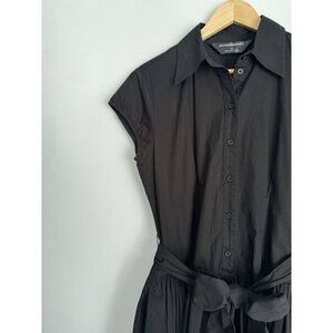 Norma Kamali Women’s Poplin Pleated Shirt Dress Large Black Collared Minimalist