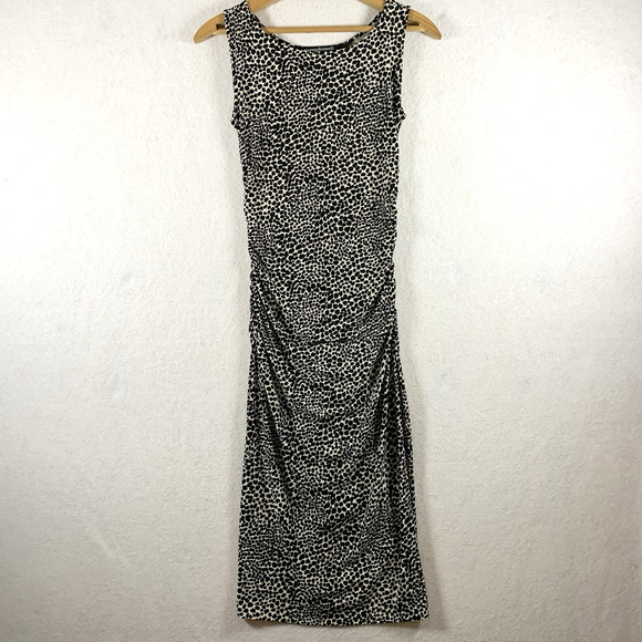 Norma Kamali Womens Reptile Print Bodycon Midi Dress Sz S Ruched Cocktail Event