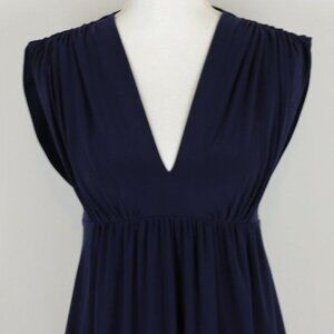 Norma Kamali Women's Small Navy V-Neck Ruched Empire Waist Knit Mini Dress