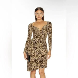 Norma Kamali Wrap Dress Leopard Print Jersey Sweetheart Neckline Size Medium