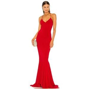 Norma Kamali X REVOLVE Low Back Slip Mermaid Fishtail Gown in Red