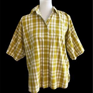 Norma Kamali Yellow Plaid Button-Down Shirt Casual Fall Classic Pumpkin Patch