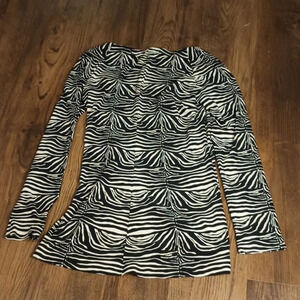 Norma Kamali Zebra Print 3/4 Sleeve Black Cross Detail Blouse NNN