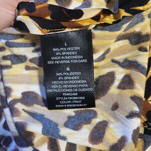 This gorgeous Norma Kamali dress is a must-have for any fashion-forward woman. The dress features a beautiful cheetah print in a vibrant multicolor palette that is sure to turn heads. It is a sleeveless, strappy sleeve design with a boat neckline that adds a touch of elegance to the dress. The dress is made from a blend of polyester and spandex, which gives it a comfortable and flattering fit. It is a midi length dress that is perfect for any occasion, whether it be casual, formal, or for business. The dress is a size large and is suitable for women of all ages. The pullover closure makes it easy to wear, and the dress is available in a regular size. Get ready to make a statement with this stunning dress from Norma Kamali!