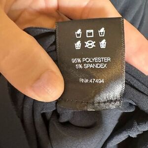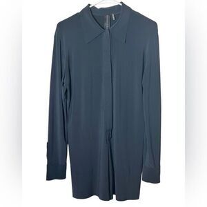 This Norma Kamali is slate gray it’s has Velcro close “buttons”, it’s a Romper and size XS.  So comfy and so chic!
