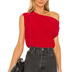 Stunning one shoulder tee with gathered front back. Last photo is an example of it on, but the color I am selling is in peach.