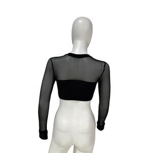 Norma Kamali X Revolve Black Polyester Crewneck Banded Midriff Top Size S: concealed bust and cuffs design, mesh and jersey fabric panels, long sleeves.
