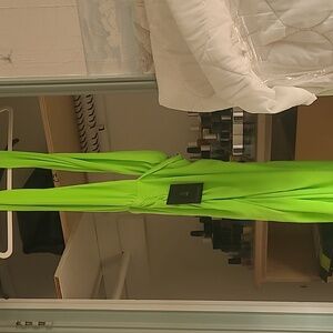 norma kamali side halter wrap dress in neon green. size M NWT.