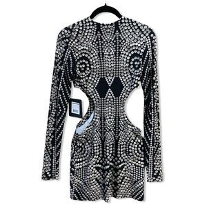 Norma Kamali Cut Out Dress Studs print Black White Geometric mini Revolve XXS