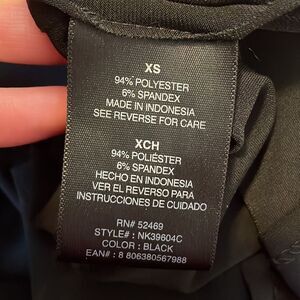 Features long sleeves with elastic cuffs, cut out collar, partially lined, mini above knee length, black