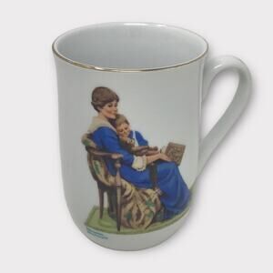 Norman Rockwell 2 Porcelain Coffee Mugs "Bedtime" & "Music Master" Vintage 1982