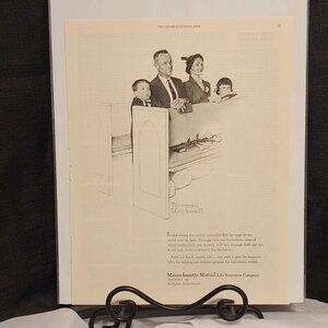 This piece is an advertisement for Massachusetts Mutual Life Insurance Company who's advertising for many years featured Norman Rockwell Art making their advertisements into their own art pieces and collectable.