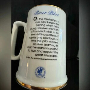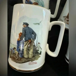 Norman Rockwell Seaside Ocean themed Collectors Mug Set Vintage 1985 made in Korea. River Pilot, Braving the Storm, Looking Out to the Sea. Really nice set of four vintage coffee mug cups. Some wear to the gold trims on the mugs as shown in photos but otherwise in great vintage condition. Smoke & pet free home.
