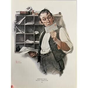 This is a book page from a 1971 reprint of Normal Rockwell's Saturday Evening Post Covers whimsical illustrations. It measures 14.75x11.5". It is on medium-bond semi-gloss paper. Photos show the front and back of the book page. Great for framing!