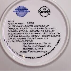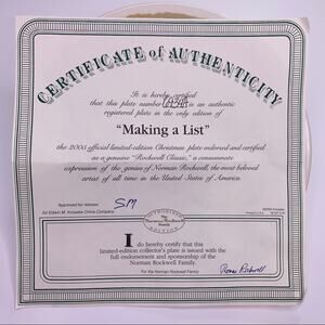2005 Making a List by Norman Rockwell. Limited Edition with certificate of authenticity 6934A. Rockwell Classic Christmas scene by Knowels. 8” plate