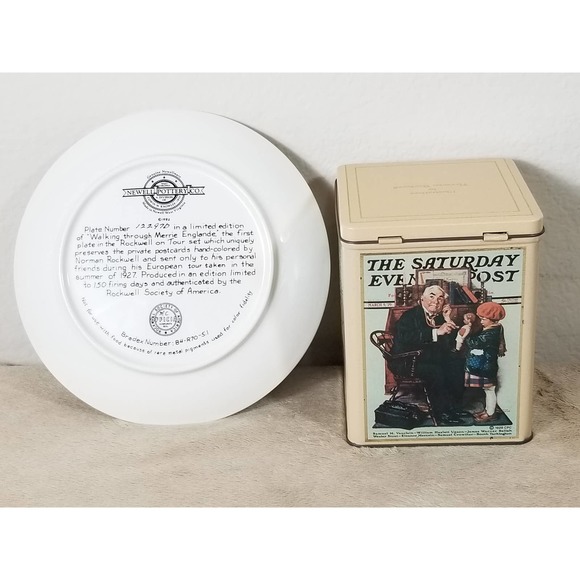 Norman Rockwell Plate Walking Through Merrie England Tin Box Saturday Evening