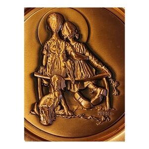 Celebrate timeless love and nostalgia with this 1979 Norman Rockwell "Puppy Love" Limited Edition Copper Plate by The Hamilton Collection. Featuring a stunning high-relief sculpture on burnished copper, this piece is based on the Saturday Evening Post cover from April 24, 1926. It captures a tender scene of young love and loyal companionship, part of Rockwell’s Man’s Best Friend series. Plate No. 2544, this collectible is a beautiful blend of Americana, vintage art, and heartfelt storytelling. Surface wear on the back is consistent with age and adds authentic vintage charm to this over 40-year-old treasure.