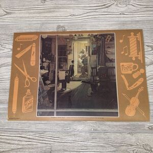 Norman Rockwell Saturday Evening Post Laminated Placemats Set Of 4 Vintage 1973. After the Prom, Shuffleton's Barber Shop, Breaking Home Ties, Saying Grace. This purchase includes the four placemats shown in the photos. These have a copyright of 1973 and the prints included are all from the 1950s. They have professional heavy lamination. The condition is Used. These placemats are in great used condition with no cuts or tears. See photos for details.