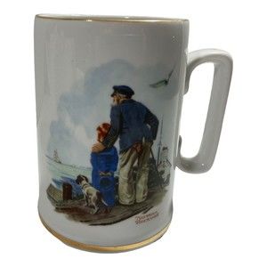 Norman Rockwell Sea Farer Large Coffee Mugs Vintage 1985 Set of 3