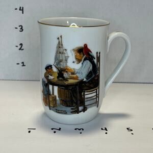 Norman Rockwell Vintage 1981 painted cups white w/ gold trim 5 unique mugs