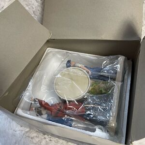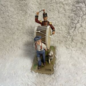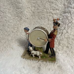 Norman Rockwell’s The Drummer’s Friend is a nostalgic and humorous depiction of two boys collaborating with confident young drummer, dressed in an oversized military-style uniform with a tall hat and drumsticks. Gently used with box.