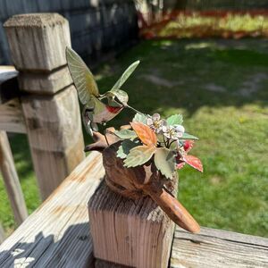 Norman Brumm Metal Art Sculpture Figurine Hummingbird Wild in pre owned condition. Please view all photos for signs of wear. A delicate and detailed hummingbird art piece featuring a lifelike hummingbird in flight, feeding from painted flowers and berries. The bird’s shimmering green wings and red throat give it a realistic touch, while the handcrafted leaves and blossoms bring a natural charm. Mounted on a rustic driftwood-style base, this sculpture makes a perfect display piece for nature lovers, garden-inspired décor, or collectors of artisan wildlife art.