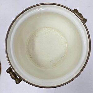 Normandy Taiwan Vintage Lily Floral Enamelware Soup Tureen Pot With Lid & Brass