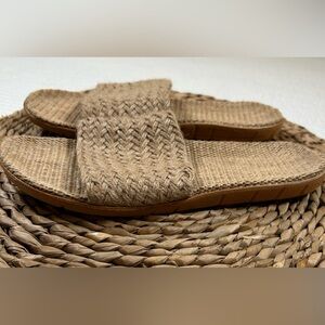 Normcore Minimalist Woven Tan Slide Sandals. Size 9