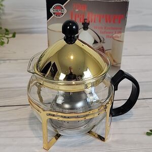 This elegant and modern gold-colored coffee and tea accessories set is perfect for brewing and serving your favorite beverages in style. Great pre-owned condition. It's never been used, but the box has some shelf wear.