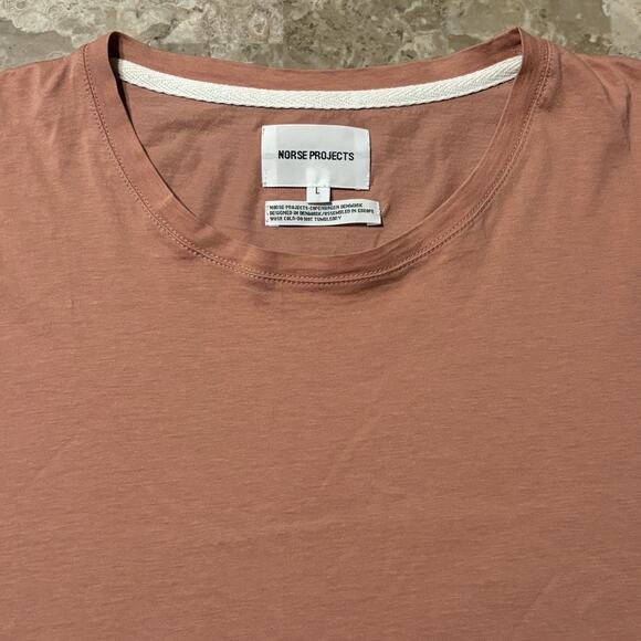 Norse Projects Shirt Mens Large Pink Esben Blind Stitch Short Sleeve Tee