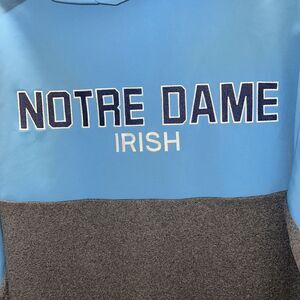 Notre Dame Stitched Jacket NWT. Notre Dame stitched on back of Jacket. Irish Notre Dame Irish Clover logo stitched on front. Fully functional zippers on all pockets. Warm inside and rain resistant material on top where blue color is. Pit to pit measurements are 27”