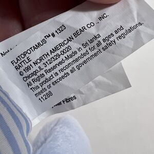 This plush rattles and is in a flat, stylized design. Includes the original tag. Rare retired item.