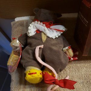 North American Bear Company Muffy Vanderbear dressed in mouse costume with original box, Twas the Night Before Christmas, has original tags on it and accessories are still wrapped in plastic, box has some minor wear on it.