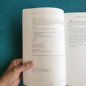 ~ Get your hands on the comprehensive North Carolina Gardener's Guide by Toby Bost. This nonfiction book is a must-have for any gardening enthusiast looking to learn more about the regional climate and how to cultivate a successful garden. Published by Cool Springs Press in 1997, this trade paperback covers 401 pages of detailed information on gardening in North Carolina.