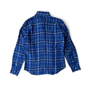 North Country European Flax Linen Blue Check L/S Button Front Shirt Medium M
