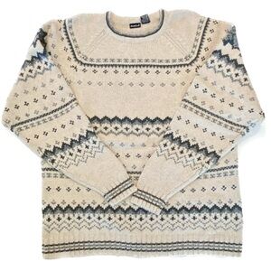 North Crest Men’s Cotton Fair Isle Sweater Blue and Cream Size XL