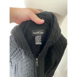 Womens size medium north crest black quilted jacket. very clean and well kept lightly used condition, no damage or stains that we saw at all.