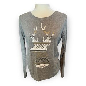 North Crest Women’s Gray Deer Print Long Sleeve Top Size Small