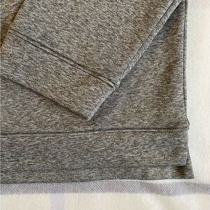 North End women’s crew neck sweatshirt. Outer color is heather gray. Inside is a soft hunter green fabric.