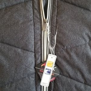 This jacket is brand new and a beautiful charcoal color. It's very warm and sporty at the same time.