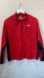 Labeled XL but could fit a large. Lightweight. Red with black side stretch accents. Zipper front pocket.