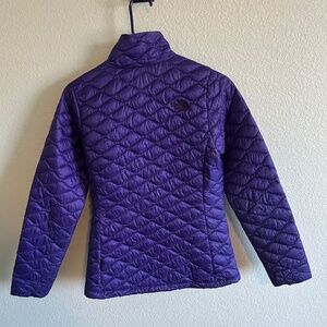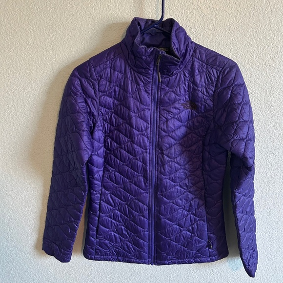 The North Face Quilted Jacket in Women's Purple, size XS, is a stylish and practical choice for the colder seasons of winter and fall. Made with polyester outer shell and insulation material, this short-length jacket features a zip closure and is machine washable. The quilted design adds a touch of outdoor-themed style, perfect for casual occasions. With a regular fit and insulated feature, this jacket provides both comfort and warmth for women looking to stay cozy and stylish during outdoor adventures or everyday colder weather.
