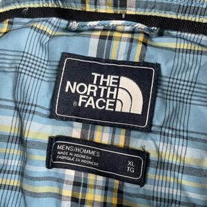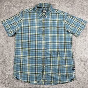 North Face Button Down Shirt Mens Extra Large Nylon Plaid Short Sleeve Blue