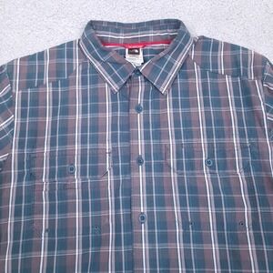North Face Button Up Camp Shirt Plaid Check Short Sleeve L Lightweight Hiking
