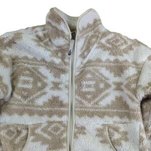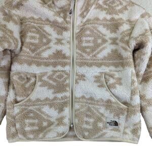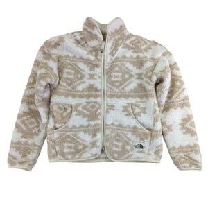 The North Face NF0A3NL6 Girls Size Medium 10-12 Polyester Fleece Full Zip Jacket White Tan Beige Fluffy