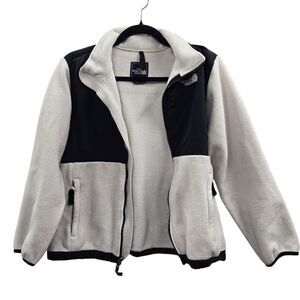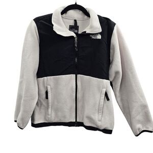North Face Coat Girls Large White Denali Fleece Jacket Black Polartec Zipper