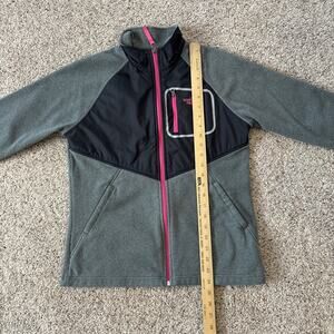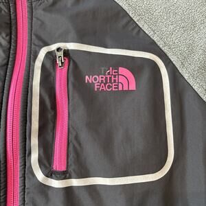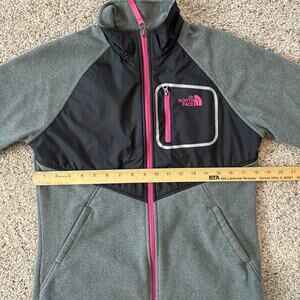 North Face Denali Jacket Girls XL Full Zip Pocket Fleece Grey Pink